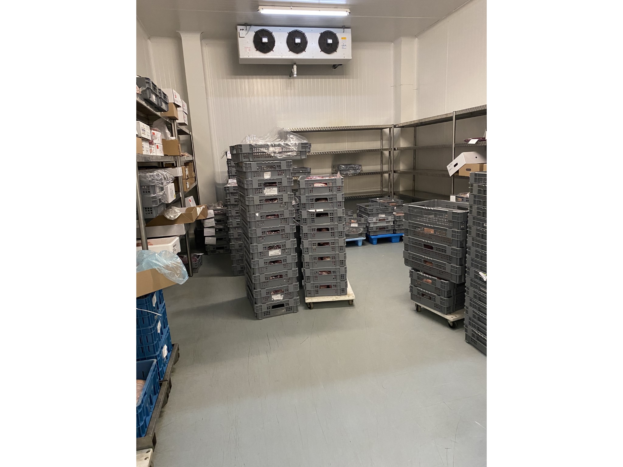 L’extension est de type industriel, structure complète en béton et panneaux frigorifiques qui referment l’ensemble du volume. La volumétrie est fractionnée en hauteur en fonction des hauteurs sous plafond de la zone de production. Cela permet d’éviter d’être imposant en travaillant le rythme des façades. Des quais de déchargement et de chargement sont prévus tout comme une circulation à sens unique autour du bâtiment.