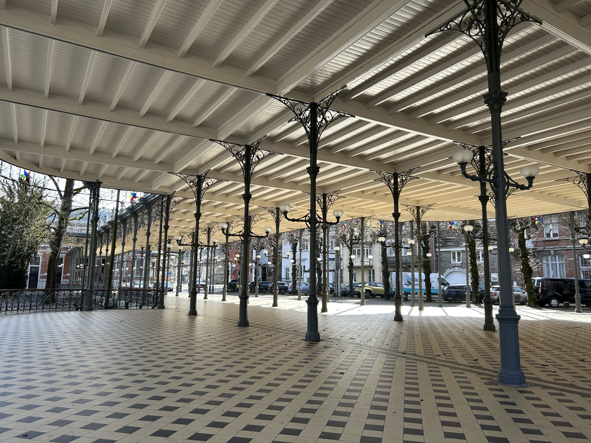 La Galerie Léopold II, monument classé, a été entièrement restaurée à l’identique. Sa fonction principale, celle de galerie-promenoir et zone d’activités, a été conservée. Les frises vitrées ont été refaites à l’identique, les colonnes replacées à leur position d’origine et les techniques modernes ont été intelligemment intégrées. Les pavés ont retrouvé leur état d’origine. Les éléments présentant un défaut de stabilité ont été remplacés ; les autres ont été restaurés. Les gardes-corps ont été restitués dans leur forme ancienne. On les retrouve aussi tout autour du Pavillon des Petits Jeux (ou « Royal ») et du Pavillon Marie‑Henriette.