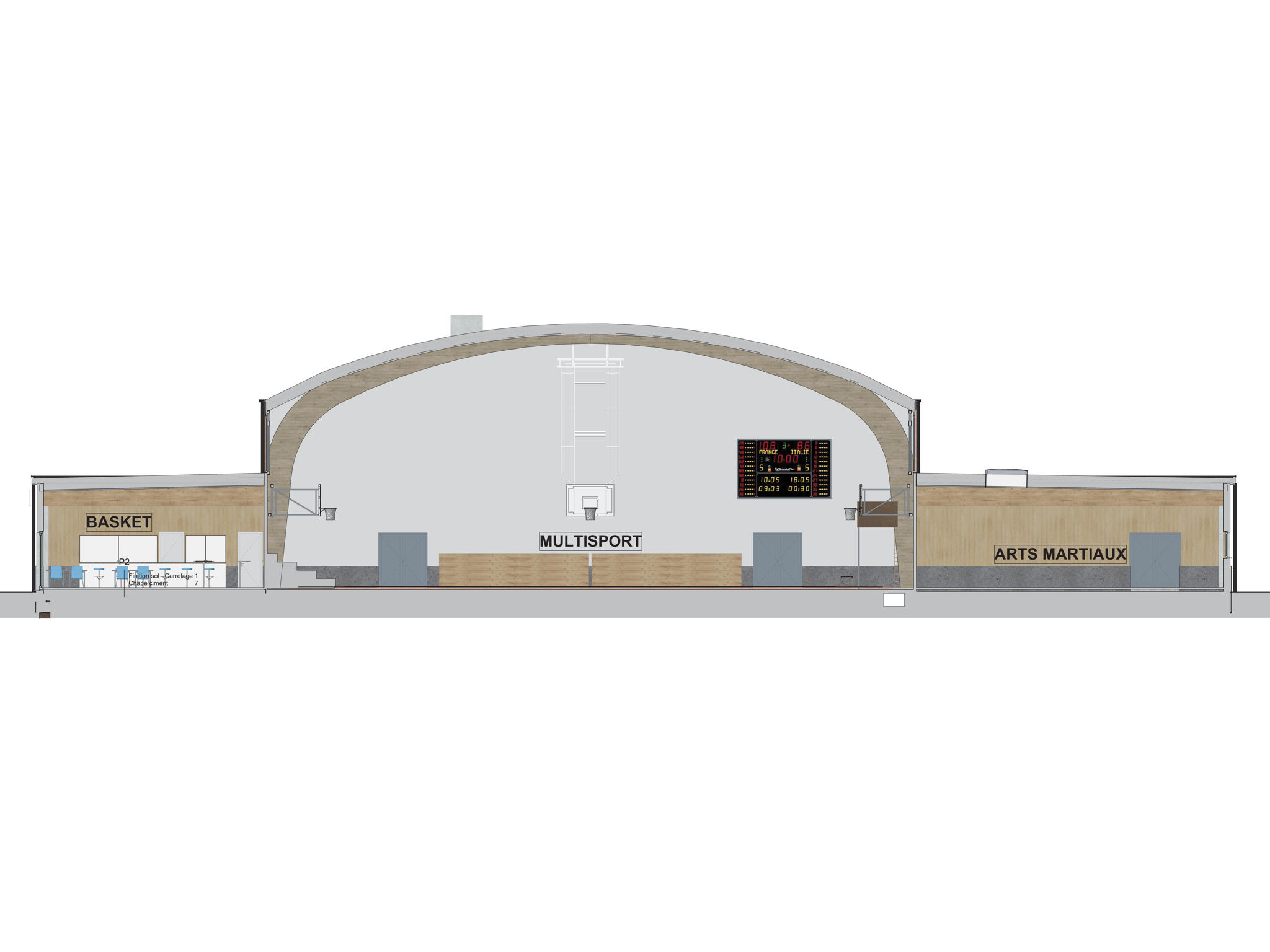 - Réorganisation des 2 doubles vestiaires en 4 simples vestiaires et 2 vestiaires arbitres
