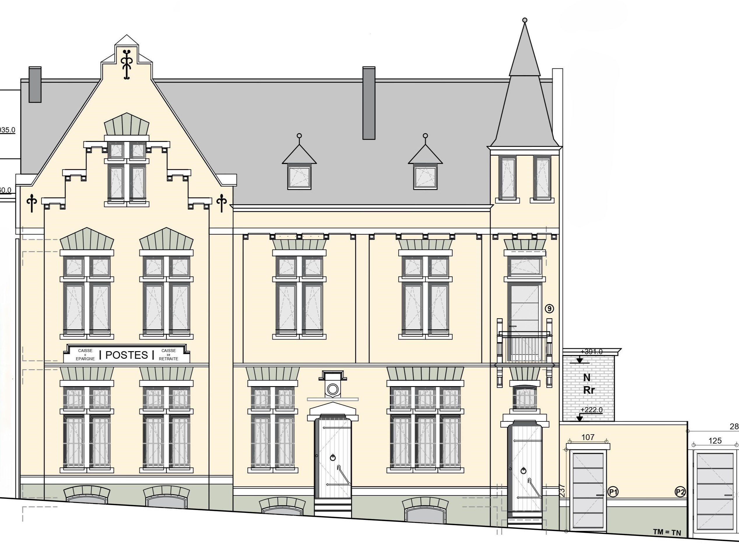 Le projet concerne un bâtiment existant qui s’intègre harmonieusement dans son environnement. L’accès se fait par la Rue Albert 1er, via les entrées déjà présentes, permettant de distinguer celle du rez-de-chaussée de celles menant aux étages supérieurs.