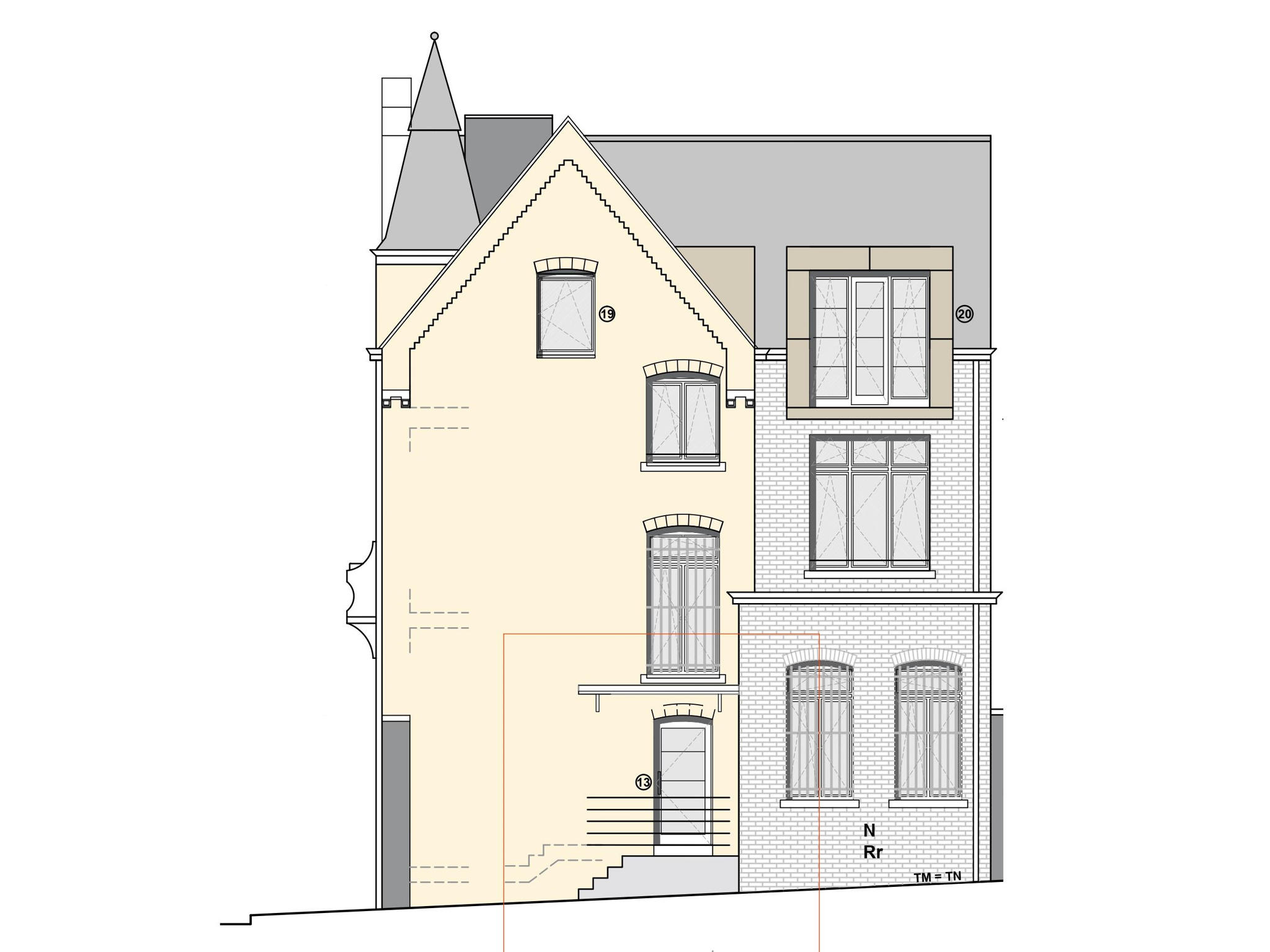 Les travaux prévus comprennent le nettoyage des façades, le remplacement des châssis et des toitures, ainsi que la création de nouvelles ouvertures : une baie sur le pignon, une à l’arrière, et l’agrandissement de trois fenêtres sur la façade arrière afin d’améliorer la lumière naturelle.