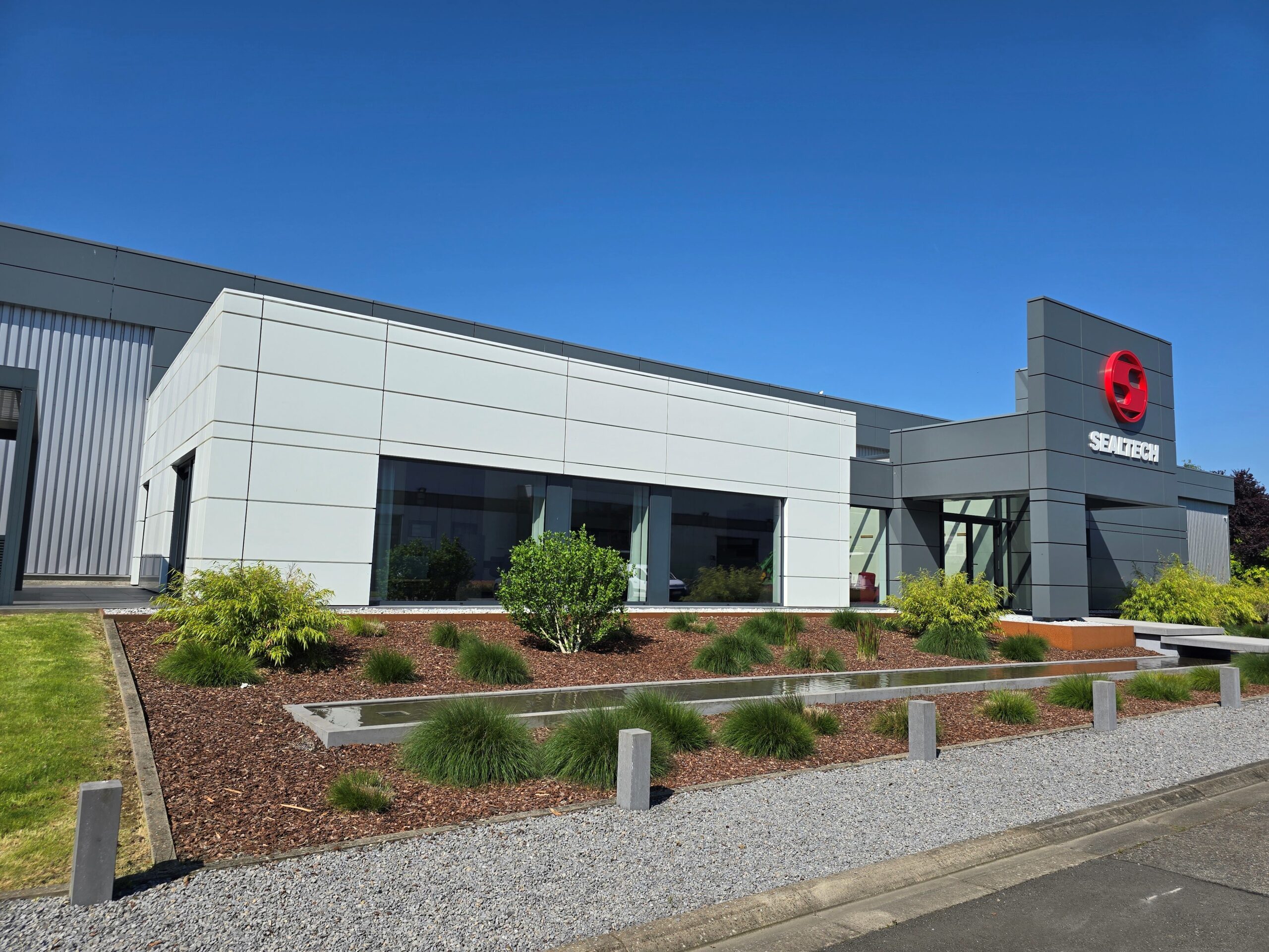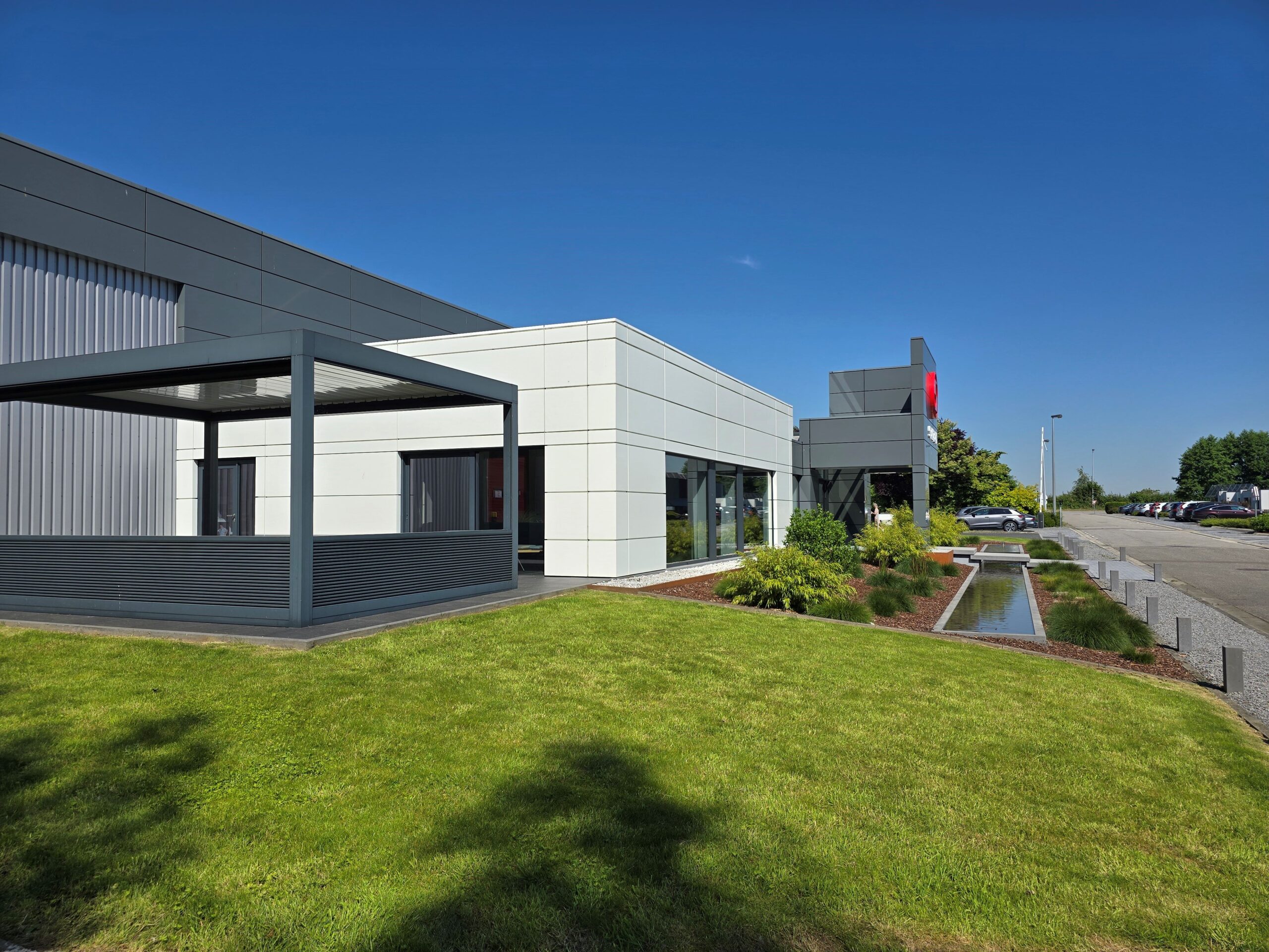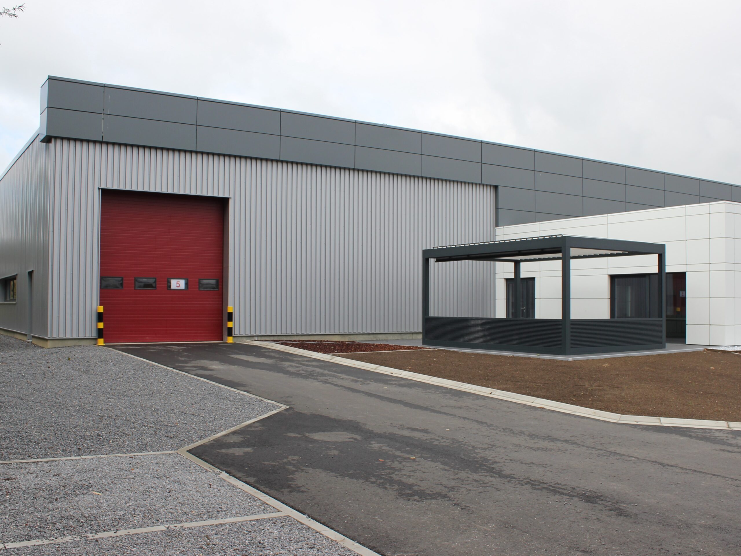 Le bâtiment industriel s’intègre au cadre bâti dans le zoning industriel de Raeren. L’aménagement des bureaux actuels devant les halls existants agrémente le site. Car le paysage du côté du bâtiment de SCHONBROODT LOGISTICS est moins verdoyant que du côté de SEALTECH et EUREGIO. Une attention particulière est donnée à l’esthétique des bureaux et à l’aspect PMR et végétal. L’architecture est épurée avec des lignes contemporaines pour la partie bureaux, le tout formant un ensemble harmonieux avec des matériaux de qualité.